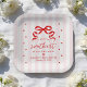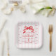 Serve desserts or light bites in style with these sweetheart baby shower paper plates featuring bold red lettering and heart accents. The design highlights a red bow at the top, paired with the phrase “A Little Sweetheart Is on the Way!” in a handwritten script. Soft pink and white stripes frame the layout, creating a polished and festive look for sweetheart-themed and Valentine-inspired baby showers. Designed to coordinate seamlessly with matching invitations, napkins, and décor, these square paper plates add a thoughtful finishing touch to your celebration.