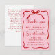 The back of the card includes an editable thank-you message—customize the wording to reflect your personal voice, share a heartfelt note, or tailor it to specific guests or gifts. Whether printed or shared digitally, this customizable 3.5" x 5" flat thank-you card offers a warm, charming, and stylish way to express your appreciation.