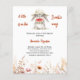 A chic white background. Decorated with a cute little bunny wearing a sunhat and eating watermelon. Beige, cream, pink wildflowers. Personalise and add the name of the mother to be and party details. Text: A little Sweetie is on hte way.