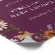 The “Burgundy Boho Little Wildflower Baby Shower” welcome sign is a symbol of elegance and charm, featuring hand-painted watercolor wildflowers in rich hues of burgundy, gold, cream, and purple, complemented by lush greenery. Ideal for any season, these wildflowers are arranged in a modern side bouquet. With cream text on a burgundy background and a whimsical wildflower pattern, this welcome sign sets a sophisticated and inviting tone for your celebration, ensuring your guests feel warmly greeted and enchanted from the moment they arrive.