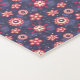 A long, rectangular navy blue yoga mat features a repeating pattern of small, pink flowers, creating a cheerful and uplifting design.