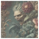 In A Long Way Out of Pain, tempestuous faces and hollowed skulls writhe through opulent scrollwork, entangled with roses in bruised pink and deep cerulean. A tapestry where anguish blooms eternal, perfect for drapery, upholstery, or garments steeped in baroque drama and spectral allure.