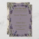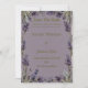 This wedding invitation features an elegant and vintage-inspired design with a lavender-themed floral frame. The delicate watercolour botanical elements, including soft purple flowers and muted green leaves, create a romantic and rustic charm. The background blends a soft beige border with a muted lavender centre, offering a sophisticated and timeless feel. The artistic hand-painted floral accents add a touch of nature and serenity, making it a perfect choice for a classic, garden, or rustic wedding celebration.