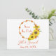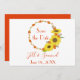 A lovely rustic sunflower wreath, this save the date invitation, features a sunflower wreath with "Save the Date" in the orange. Underneath is the couple's name and wedding date. The back is orange. Personalise yours today!