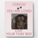 Celebrate the bond between a pet mom and her beloved fur‑kid with this heartfelt photo design. Your pet’s picture is paired with the message “Mom You Are Loved” and two tiny pawprints for a tender, uplifting touch. Beneath the image, the word “love” rests above an editable nickname, turning this plaque into a meaningful keepsake she’ll treasure on a desk, shelf, or bedside table.