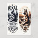 A digital illustration of a German Shepherd dog sitting on a bench in a park, surrounded by nature, with a heart-shaped design and the text A Loyal Hearts Treasure in a vintage style. The image is in two versions, one in black and white and one in colour.