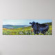 An interactive acrylic painting of a black dexter cow on Dartmoor