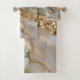 A luxurious gold and white marble background with metallic veins and soft flowing gradients. The elegant shimmer and fluid stone design make this texture perfect for modern bathroom decor.