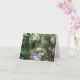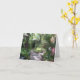 A magical green garden with spinners and wind chimes and a bench to sit on to just watch - featured on a blank greeting card