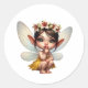 A magical little fairy crouching down classic round sticker