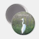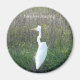 Round magnet with a photo of a white Crane & timelessimaging