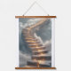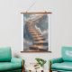 A majestic, curved staircase composed of luminesce hanging tapestry