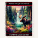 A majestic moose by a vibrant waterfall at dusk notebook