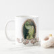 A majestic peacock in gold and green coffee mug