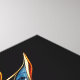 A side-view portrait of a stunning horse in abstract style. This artwork features an artistic stained glass technique with golden lines, filled with vibrant red, blue, orange, black, and silver hues against a dark background. The result is a majestic portrayal of a stallion exuding regal splendour.