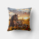 A pretty horse themed throw pillow. A beautiful scene of a mama horse and her baby foal sitting on the Autumn leaves at dusk.