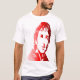 This stylised portrait showcases a man with wavy hair, rendered in shades of red against a white background, emphasising his features through bold lines and a gradient effect.