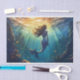 A mermaid suspended underwater, in a pool of light that shines down from the dappled surface.