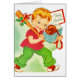 A cute little boy holding a Christmas sign and a box full of gifts small (4.25" x 5.5") NOTE CARD.