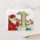 Vintage illustration Victorian Christmas holiday design featuring an old world Santa Claus on an old fashioned string telephone with a young girl.