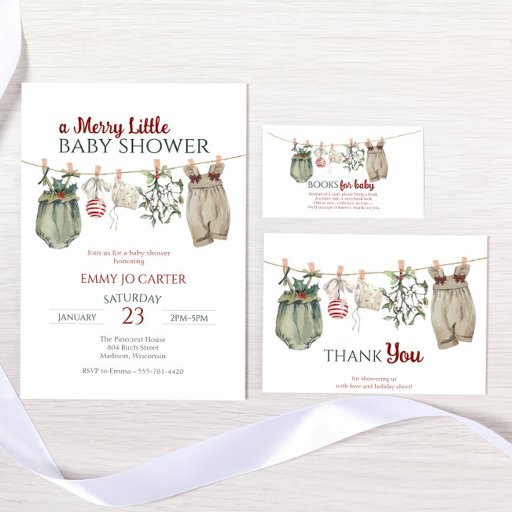 A Merry Little Girl Baby Shower Christmas Clothes Invitation