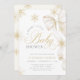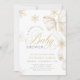 Celebrate a joyful winter moment with this A Merry Little Baby Shower invitation, featuring elegant gold glitter snowflakes and a soft ivory ribbon bow. Perfect for a holiday baby shower with a warm, festive, and sophisticated style. Ideal for December or Christmas-themed celebrations for a baby boy or girl.