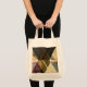 The printing came out very well, better than I had anticipated. The natural color fabric is sturdy with strong seams and comfortable handles. This tote fits easily over my shoulder. As it is filled, the bottom flattens out--very cool! I would buy this product again. This grocery tote holds a lot of groceries! The image quality was very good. The colors were a little darker than I had expected. The darkness may have been due to printing on a natural color fabric rather than on white. The cat design is attractively centered on the tote. The spirit of the design is very lively, just as it appears on the Zazzle website.