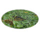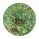 A Circular, 12 inch, Decorative Glass Cutting Board, With a Picture of a Beautiful Monarch Butterfly, lying , in the Grass on it.h