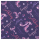 Modern decorative graphic monogram initial letter A and name patterned fabric. Pretty doodled art letter A converted into a graphic with your own short name. Hand drawn design embellished with flowers and hearts. Personalise with your own name choice (please note not all names will fit due to the nature of the font) currently reads Abbey, other name lengths are available, if you need assistance contact me, happy to post one for your name. Fabric in shades of pink and purple on a navy dark blue background which can be changed if required. A great way to personalise your sewing and quilting projects. Ideal for a girls personalised sewing items. Original art and design by Sarah Trett for www.mylittleeden.com