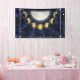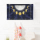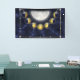 This sparkling design illustrates the lunar cycle in bright gold and deep blue. The jewels representing the moon phases run in a semi-circle from waxing crescent, to first quarter, waxing gibbous, full moon, waning gibbous, last quarter, and ending on a waning crescent. They are set against a fractal backdrop like the starry sky, with a silvery glowing moon photo from NASA to complete the piece.