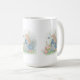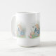 A mother rabbit with a baby rabbit in a clearing w coffee mug