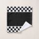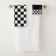 Racing theme towel set, perfect for the man cave bath, or race shops, decorative black and white chequered flag design. The white can be switched to any colour to match your decor, race team, or shop colour.