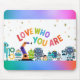 A mouse pad for kids saying "Love who you are" as motivation for them while it is cute and glorious.