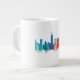 A mug for coffee/tea with a painting design of the New York city skyline in many colours