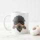 A photo mug made up of a full-body picture and up-photo of the head of a powerful crocodile turtle.