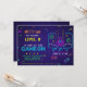 Spice your birthday celebration in the glow of neon! This invitation sets the scene for a gaming-themed party, lit up with neon colours like orange, white, yellow, blue, teal, pink, and green. The design hints at a thrilling gaming experience with a neon spaceship rocket zooming across a starry arcade-style backdrop.