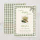 Celebrate a beautiful new beginning with this elegant sage green gingham baby shower invitation. Featuring a soft bow, delicate floral books illustration, and the sweet quote “A New Chapter Begins”, this design is perfect for a cozy, storybook-inspired baby shower.