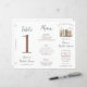 Add a more personal touch to your events with this trifold table sign! This sign features three sides: a table number, a menu, and a space for a special thank you message. Simply fold this letter sized sheet of paper at the lines provided and glue together to form a standing triangular table sign. The text is fully customizable!