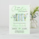 A New Chapter begins watercolor floral book gender neutral green baby shower Invitation. Invite friends and family to gather in celebration of a new beginning with this exquisitely crafted baby shower invitation. Designed with book lovers in mind, this charming card sets the scene for a memorable gathering, honouring the mother-to-be. Adorned with a beautifully arranged books wrapped in rope and complemented by mason jars filled with delicate flowers and green butterflies, this invitation radiates literary charm. The elegant blend of serif and script typography emphasises key details, including "Chapter" and the mother’s name, adding a thoughtful and personal touch. Its soft green watercolor background evokes a sense of anticipation, ensuring this invitation becomes a treasured memento of the joyous occasion.