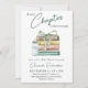 Watercolor a stack of books is tied with a green bow. A new Chapter will soon begin. Baby shower books, new chapter.
