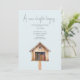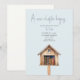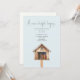 "A new chapter" baby shower theme featuring illustration of a mini neighbourhood lending library with a light blue background.