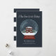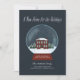 This holiday card and moving announcement features the words "A New Home for the Holidays" at the top with an illustration of a house inside of a snow globe below. Customise it with your name and new address.