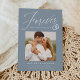 Share the news of your engagement with these elegant photo engagement announcements! The announcements feature the phrase "Forever has a nice ring to it" in a white calligraphy script accented by an illustration of wedding rings on a dusty blue background. Your square photo is displayed near the centre of the design with your names and additional details shown below. The modern engagement announcement reverses to display a white and dusty blue geometric design.