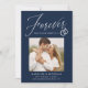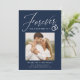 Share the news of your engagement with these elegant photo engagement announcements! The announcements feature the phrase "Forever has a nice ring to it" in a white calligraphy script accented by an illustration of wedding rings on a navy background. Your square photo is displayed near the centre of the design with your names and additional details shown below. The modern engagement announcement reverses to display a white and navy geometric design.