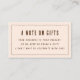 A Note on Gifts | A Tini Bit Older Birthday Party Enclosure Card