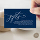 Celebrate the beginning of your journey together with our elegantly crafted "gifts" wedding invitation enclosed card in navy blue theme. Featuring a sophisticated blend of modern script and romantic allure, each card is meticulously designed to convey the essence of your special day. Perfectly suited for couples seeking a unique way to share their honeymoon dreams, this card invites your loved ones to contribute towards unforgettable experiences. Whether nestled in a luxurious envelope or presented alongside your wedding invitations, our card adds a touch of enchantment to your celebration, promising cherished memories that last a lifetime. Designed by TeeshaDerrick.