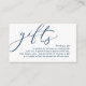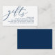 Celebrate the beginning of your journey together with our elegantly Navy Blue crafted "gifts" wedding invitation enclosed card. Featuring a sophisticated blend of modern script and romantic allure, each card is meticulously designed to convey the essence of your special day. Perfectly suited for couples seeking a unique way to share their honeymoon dreams, this card invites your loved ones to contribute towards unforgettable experiences. Whether nestled in a luxurious envelope or presented alongside your wedding invitations, our card adds a touch of enchantment to your celebration, promising cherished memories that last a lifetime. Designed by TeeshaDerrick.