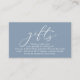 Celebrate the beginning of your journey together with our elegantly classy dusty blue crafted "gifts" wedding invitation enclosed card. Featuring a sophisticated blend of modern script and romantic allure, each card is meticulously designed to convey the essence of your special day. Perfectly suited for couples seeking a unique way to share their honeymoon dreams, this card invites your loved ones to contribute towards unforgettable experiences. Whether nestled in a luxurious envelope or presented alongside your wedding invitations, our card adds a touch of enchantment to your celebration, promising cherished memories that last a lifetime. Designed by TeeshaDerrick.