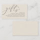 Celebrate the beginning of your journey together with our elegantly classy cream grey crafted "gifts" wedding invitation enclosed card. Featuring a sophisticated blend of modern script and romantic allure, each card is meticulously designed to convey the essence of your special day. Perfectly suited for couples seeking a unique way to share their honeymoon dreams, this card invites your loved ones to contribute towards unforgettable experiences. Whether nestled in a luxurious envelope or presented alongside your wedding invitations, our card adds a touch of enchantment to your celebration, promising cherished memories that last a lifetime. Designed by TeeshaDerrick.