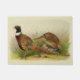 Coloured Drawing of a Ring Necked Pheasant rooster looking over his hen while she pecks for seeds in the clearing of a grass filled prairie. The Rooster is a rainbow of colours including green, yellow, oranges, blues, browns and whites. A pretty Upland Game bird.